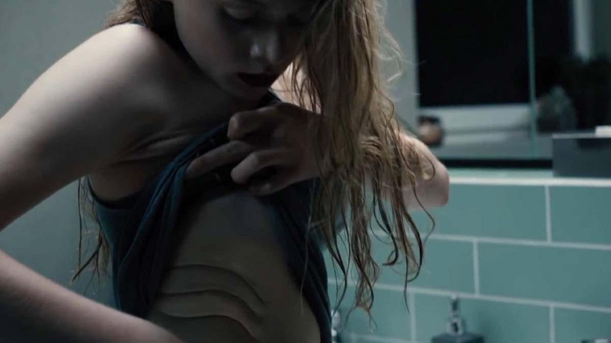 La pregunta principal es: ¿dónde están los adultos? Los profesores no parecen servir para mucho más que para apuntalar el estigma. La madre obsesionada con el deporte no parece sino reforzar el rechazo al propio cuerpo y los cambios debidos a la pubertad, con trastornos alimentarios sugeridos y ligados de manera muy interesante con la transformación de corte fantástico. Pero son cambios que también se pueden conectar con posibles venéreas e incluso con algo psicosomático. En cualquier caso, la visceralidad creciente en la relación entre ellas ilustra la ruptura del vínculo madre-hija, el rechazo a seguir el modelo de mujer materno o incluso la sensación de traición al sospechar ser adoptada y el síndrome de abandono que implica. El padre, fuera de plano, es un padre ausente. Su voz es como que pasa por ahí, pero no se posa. No se detiene, no cuida y no se comparte. No hay vínculo emocional real. Es un espectro. Cumple de manera puntual con funciones como llevar a su hija en coche y ella va atrás, porque aún es una niña. Y él es un señor con un puesto importante, de ahí su impecable traje y la choza familiar, que no está nada mal. Es un hombre de negocios, curtido para lo laboral. Para ella es una espalda, la que va en el asiento de conductor. Él dirige, él manda. Él solo da la cara cuando llega el momento de imponer una autoridad, una represión, la amenaza de castigo. Un castigo en forma de amenaza con retomar una terapia. ¿Hay algo menos terapéutico que transformar ese recurso en amenaza?