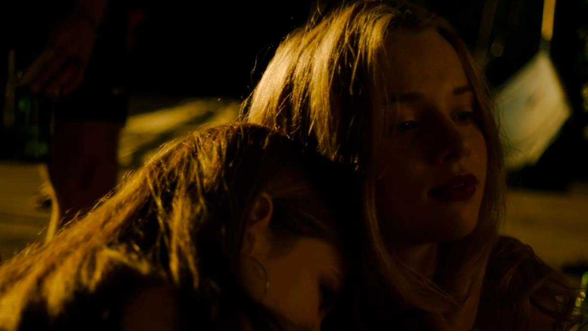 Mia encarna el despertar sexual entre la verdadera curiosidad y la cosificación extrema, que la lleva, como a muchas (y muchos) adolescentes, a buscar validación mediante la promiscuidad y el atrevimiento con las drogas y otras situaciones de riesgo absurdas. Su pecera es un ecosistema brutal y cruel, como el del fondo del mar, en el que aparentar ser una depredadora para evitar el bullying puede llevarle a transformarse orgánicamente en ello. Pero, por otra parte, bajo todas esas escamas con que se eriza para protegerse, late una gran confusión. A veces un verdadero interés por el placer, el sentir; una la búsqueda de la orientación sexual, incluso una posible bisexualidad (riesgo de estigma añadido, y en estrecho contacto con la vejación de la promiscua entre las promiscuas). Y la presión sobre el cuerpo y su conducta jamás se relaja, ni en entornos de supuestos adultos: desde el tipo cuarentón de Tinder que justifica su propio deseo perverso con las edades definidas por el consentimiento legal, hasta una espantosa escena claramente condenatoria de cierta Manada de treintañeros —llevados en esta ocasión a una fiesta con adolescentes—, Lisa Brühlmann no deja títere con cabeza a la hora de repasar culpables repugnantes de la existencia de cuentos amedrentadores como Caperucita. Y su iconografía se palpa en la escena más grotesca, con una delicadeza estética que hace destacar la carita de niña de Mia y sus labios rojos en una oscuridad que sería de un resultado fotográfico bello si no irrumpiera en ella algo tan pornográfico como violento. Acometer esta escena supone algo arriesgadísimo para la cineasta, y resuelto de una manera impresionante, por lo que remueve y por lo delicada que es a la vez con su protagonista pese a lo sórdido de lo que está narrando.