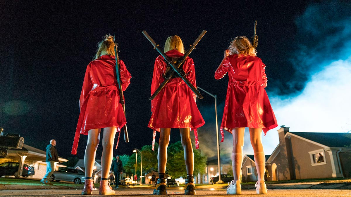 Una de las cosas más interesantes de Nación salvaje es su estética. El uso de las luces de neón es una constante en el estilo de Sam Levinson, pero aquí no es un puro detalle decorativo para hacerse el moderno —como ocurre en la trilogía de John Wick (Chad Stahelski, 2014), por ejemplo—, esta iluminación tiene su razón de ser. La clara predominancia del rojo y azul, hace que todo recuerde a la bandera de los Estados Unidos, pero a la vez, y al igual que ocurre en Euphoria, estás luces tienen una clara intención de distorsionar la realidad, de generar una sensación de distopía que de alguna manera representa la adolescencia, y en concreto, esta adolescencia. De esta manera, Nación salvaje construye una especie de sociedad alienada con claras influencias de la saga The Purge (James DeMonaco, 2013), pero siendo a la vez una mordaz radiografía de los tiempos actuales y de esa confrontación entre el costumbrismo de la sociedad imperante y el arrollador libertinaje de las nuevas generaciones. Además, la película está tan bien coreografiada que casi parece un videoclip.