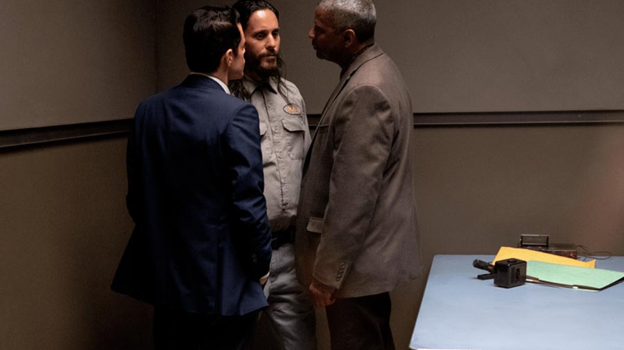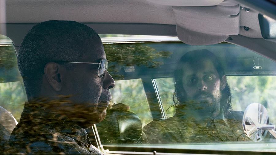 Los ingredientes ya están servidos y las pretensiones parecen estables, lo suficiente como para asegurar una película entretenida, con referencias visuales atractivas y bien ejecutadas, además de momentos de tensión parsimoniosos que tanto se añoran en esta tipología de filmes. Sin embargo, a medida que avanza el metraje de Pequeños detalles (Jonh Lee Hancock, 2021) el homenaje se convierte en intento de superación de los progenitores claros de esta película como puede ser la filmografía de suspense y policíaca de Fincher, Hitchcock o el creador de la serie True Detective (2014), Nic Pizzolatto. En ese instante la cinta, que sin duda necesita una lección de humildad, pierde sus estribos pero intenta recuperarlos con éxito gracias a algunos aciertos de guion, al tímido y eficaz compositor Thomas Newman —reciclando estilos musicales que resuenan en el espectador de oído fino—, junto con un Denzel Washington que se dedica a dar lecciones de interpretación a un sobreactuado Jared Leto y a Rami Malek, todavía resacoso por el éxito de su última imitación. En Pequeños detalles Washington interpreta a un sheriff, cuya responsabilidad policial roza la jubilación, que ayuda a un joven inexperto como Rami Malek, un detective de homicidios, a encontrar a un asesino en serie que, aparentemente, se ha mostrado en los inicios de la película. Y ahí es donde reside la fuerza principal de la película, en las apariencias, en el engaño, en el constante juego de miradas y en los detalles que tanto se repiten a lo largo del filme, intentado jugar con el espectador para establecer un código policial, un lenguaje no hablado entre el público y el director.