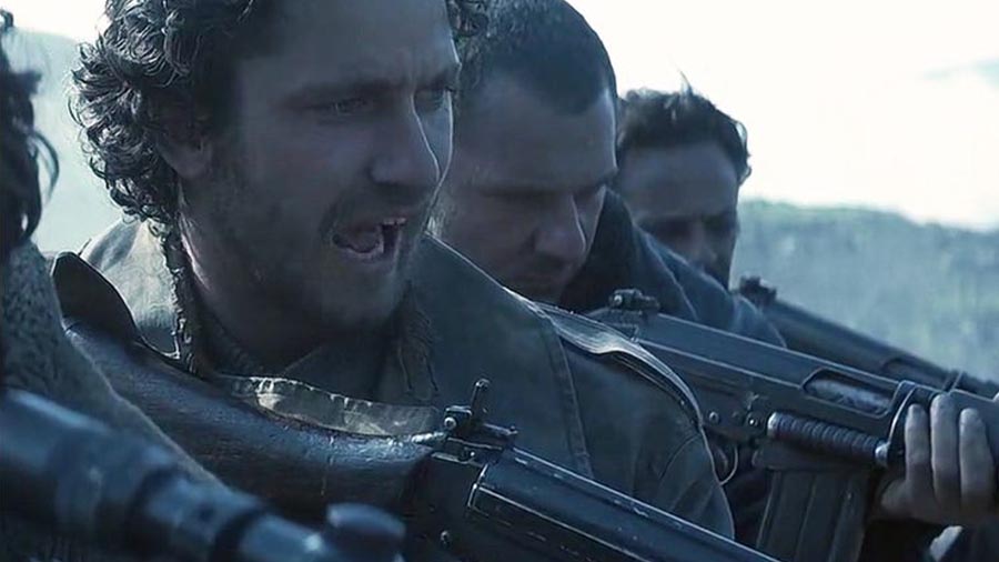 Todos los dramas épicos del fin de los tiempos intentan, de una u otra forma, dar lugar a una imagen de la nueva sociedad a partir de los legajos y los restos de la antigua, indicando así cuáles son los elementos más superfluos y prescindibles de la sociedad previa (lo que ha perecido con el Fin) y cuáles son sus rasgos más auténticos y resilientes (lo que ha sobrevivido). En este juego de supervivencias se suele concebir la verdadera naturaleza humana como ligada inextricablemente a la agresividad, barbarismo y violencia, como en el ansia de velocidad que se sobrepone a todo en la saga de Mad Max (1979-2015), representando el fin del mundo como una oleada de pillaje, guerra, disturbios y bandas armadas campando a sus anchas. La idea de que el desmoronamiento de la sociedad traerá consigo un escenario de señores de la guerra y supervivencia del más fuerte es un instinto que tenemos más arraigado de lo que nos gustaría admitir (y que nos prefigura y condiciona a la hora de reaccionar a un estado de crisis y de inestabilidad, lo queramos más o menos). Lo interesante de El imperio del fuego es que toma en consideración este instinto, encarnado en el personaje de Denton Van Zan, interpretado por Matthew McConaughey, impredecible comandante (perilla vikinga, tatuajes tribales y hacha puntiaguda incluidos) que dirige un contingente del ejército americano recientemente aterrizado en las islas británicas con objeto de llegar al fondo del asunto de los dragones, y cortarlo por lo sano. Van Zan y su brigada de tanques y tipos con ametralladoras aparece de forma natural como hostil y peligroso, como la mezcla explosiva de una mentalidad lunática y un arsenal militar.