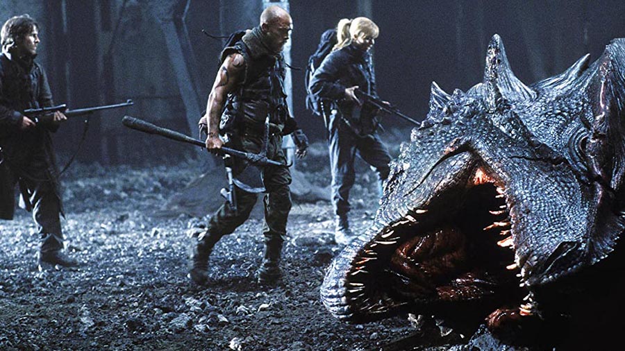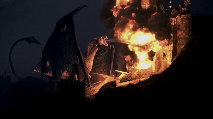 Ese es, sin lugar a dudas, el gran acierto de El imperio del fuego, y lo que la convierte en un clásico del género de principios de milenio. Lejos de pavonearse en su espectáculo y llenar la pantalla de hora y media seguida de fuegos artificiales, El imperio del fuego hila con gran astucia unos personajes inolvidables y una ambientación cuidada hasta el último detalle con un festival de efectos especiales que se siente justificado y merecido. Y es que los efectos digitales de El imperio del fuego, que en su mayoría no han envejecido nada mal, son sin duda uno de los aspectos por los que merece la pena revisitar el film. Al ver las terroríficas siluetas de los dragones de El imperio del fuego, sin duda sorprende que estas criaturas parezcan más aterradoras y creíbles que las lagartijas mastodónticas de Juego de tronos, especialmente teniendo en cuenta el año de su producción. Este gran rendimiento del CGI en El imperio del fuego no se debe tan sólo a los avances revolucionarios que se estaban dando en el ámbito de los efectos especiales digitales, sino fundamentalmente gracias a una gran astucia en su planificación: los dragones aparecen casi siempre ocluidos o difuminados tras objetos ambientales, en la lejanía, en la oscuridad de la noche o sobresaliendo por del encuadre de la cámara. Esta estrategia de insinuar más que mostrar logra precisamente imbuir a unos dragones creados por tecnología de 2002 de una credibilidad y sensación de amenaza de la que muchos otros ejemplos de su tiempo, y del nuestro, sencillamente carecen.